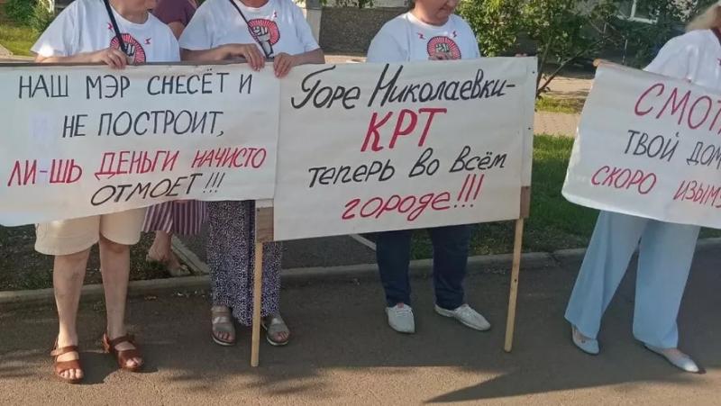14 июня жители Николаевки, чей микрорайон попал под программу комплексного развития территории (КРТ), провели акцию протеста. Поводом для акции стало решение мэрии о расширении зоны КРТ.
