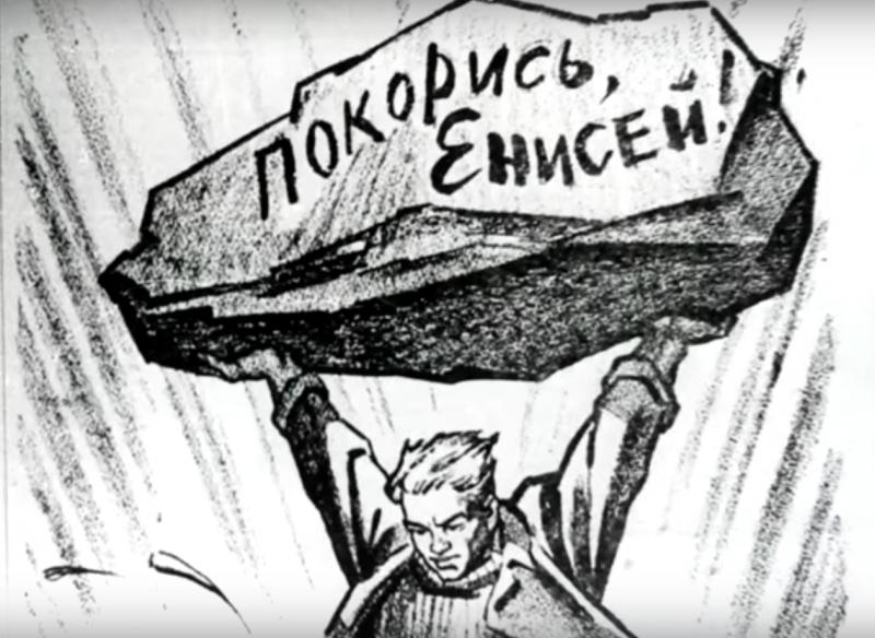 И действительно, 8 августа 1959 года на месте будущей Красноярской ГЭС на дно Енисея был брошен первый камень с надписью «Покорись, Енисей!». После чего в перемычки котлована первой очереди были отсыпаны кубометры скальной породы.