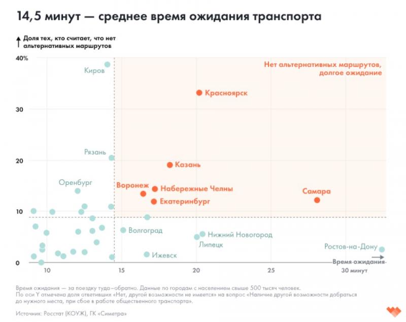 Долгое ожидание на остановках остаётся одной из самых болезненных тем для горожан. При зимних морозах даже десятиминутное опоздание автобуса превращается в серьёзное испытание. Кроме того, из-за редких рейсов в салонах часто бывает тесно. Для сравнения: в Ярославле и Саратове среднее время ожидания общественного транспорта составляет около девяти минут за одну поездку туда-обратно.