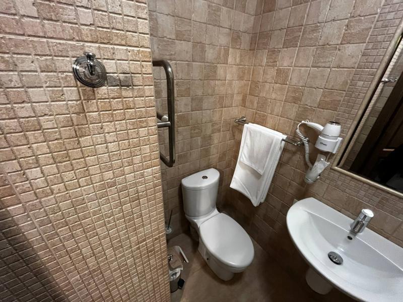 Ванная комната аккуратная, но прохладная — и вот тут начинается первая история. Змеевик не греет. Мы сообщили об этом, и буквально через пять минут на пороге стояла администратор. Девушки извинились, попытались что-то сделать, но не помогло. Главное — старались и не делали вид, будто это «так и задумано». В какой-то момент даже стало неудобно от их вежливости.
