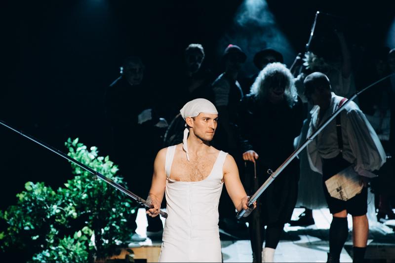 В субботу актёры Красноярского драматического театра имени Пушкина покажут на сцене спектакль «Розенкранц и Гильденстерн мертвы». Возрастное ограничение: 16+.