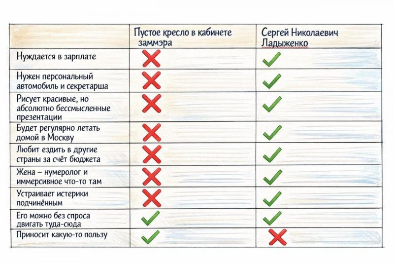 Информация про собеседование Сергея Николаевича Сергеем Викторовичем в мэрии, конечно, слишком привлекательна, чтобы в неё поверить и начать обсуждать. Отдельно благодарим коллег за формулировку обладает уникальной способностью подстраиваться под любую ситуацию (любое руководство) и решать поставленные задачи в режиме "принеси, поди, подай, вот здесь подпиши, отойди в сторонку, не мешай", она чудо как хороша.