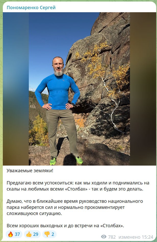 Огорченный новостями про Столбы, Сергей Александрович Пономаренко в своём стиле— а я как хотел как и буду делать. И не стесняясь ничего.