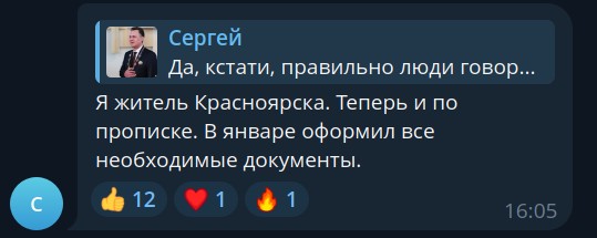 В комментариях подписчики напомнили градоначальнику о его обещании сменить столичную регистрацию на местную. В ответ Верещагин написал, что теперь считается жителем Красноярска не только фактически, но и по документам, так как оформил все необходимые бумаги еще в январе.