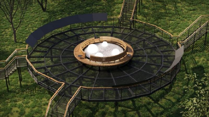 Строители не просто проложат маршрут, но и создадут полноценную зону отдыха. На склоне оборудуют смотровые площадки с обычными и радиусными скамейками, барными столами и вазонами. Саму лестницу оснастят фундаментом, удобными площадками, перилами и информационными стендами.