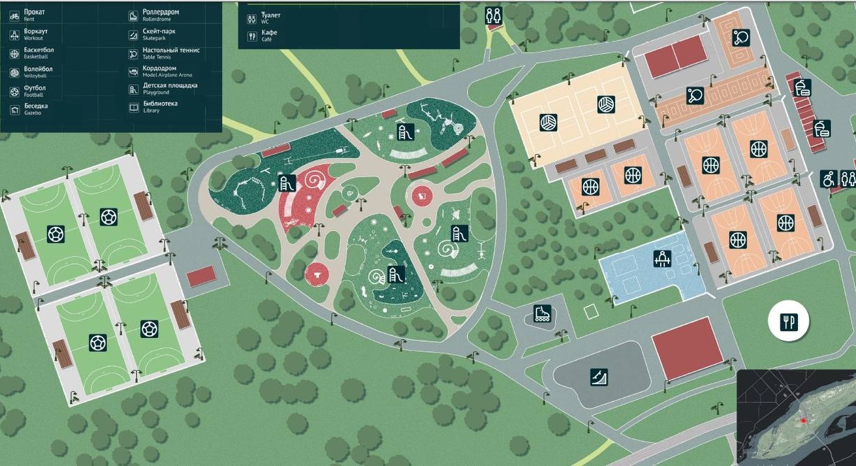 Руководство парка обратило внимание на сильный износ существующих баскетбольных, футбольных и волейбольных площадок. Пресс-секретарь общественного пространства Владимир Попов сообщил, что проект нового комплекса сейчас проходит экспертизу. Точные сроки начала строительных работ станут известны только после ее завершения. В качестве временной меры на предстоящее лето в парке установят четыре новых баскетбольных кольца взамен тех, которые ранее демонтировал собственник.