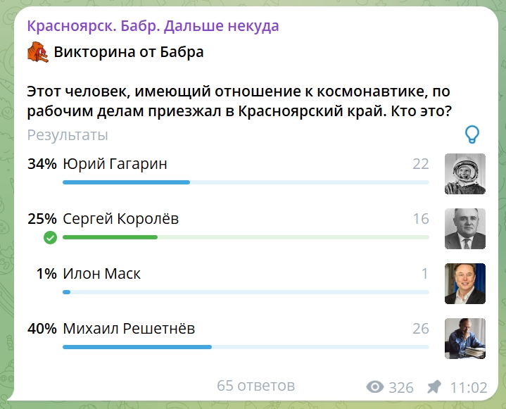 Королёв, Решетнёв и Гагарин. Итоги викторины Бабра