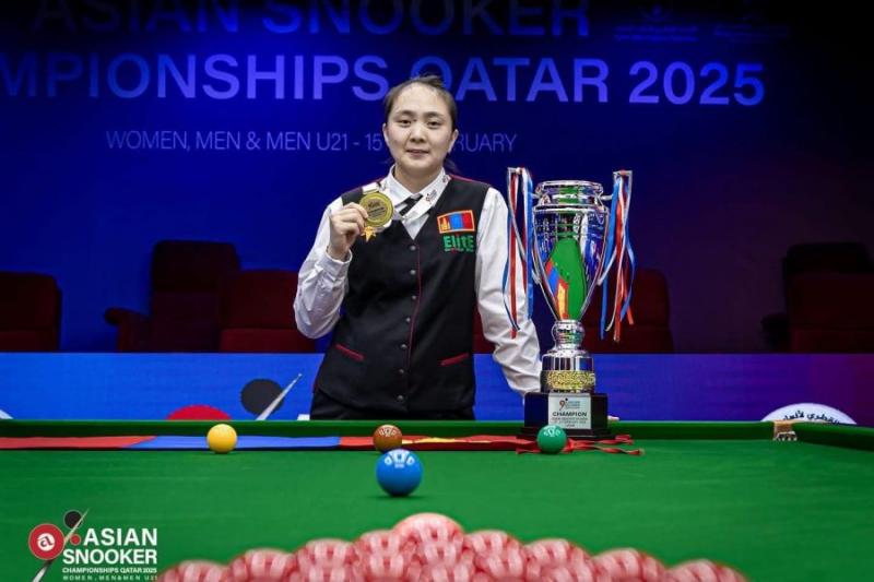Нарантуяа Баярсайхан завоевала титул чемпионки Азии по снукеру, не проиграв ни одного раунда. Турнир проходил в столице Катара Дохе и собрал сильнейших игроков континента. В финальном поединке Нарантуяа уверенно обыграла Нг Он Йи из Гонконга и стала лучшей среди женщин.