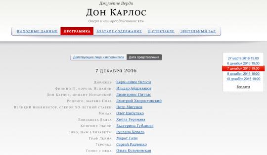 Несмотря на заверения менеджера Дмитрия Хворостовского Анны Ильиной, Дмитрий Хворостовский не сможет спеть партию Родриго в опере Дж. Верди «Дон Карлос» на сцене Большого театра 7 и 10 декабря.