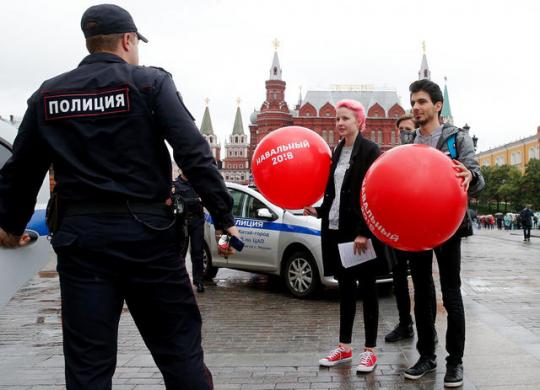 В Москве большинство волонтеров пытались раздавать листовки и агитировать прохожих у станций метро. Столичные волонтеры рассказали, что задерживали всех, кто был с воздушными шариками с надписью «Навальный 2018». «С шариком - это попадание 100 из 100. Их сразу хватали», - подтвердил координатор московского штаба Навального Николай Ляскин.