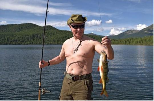 64-летний глава государств ловит рыбу с голым торсом, плавает в плотном гидрокостюме и охотится на щуку, купается и загорает, водит понтонный катер и вообще всем своим видом показывает, что он еще «ого-го».