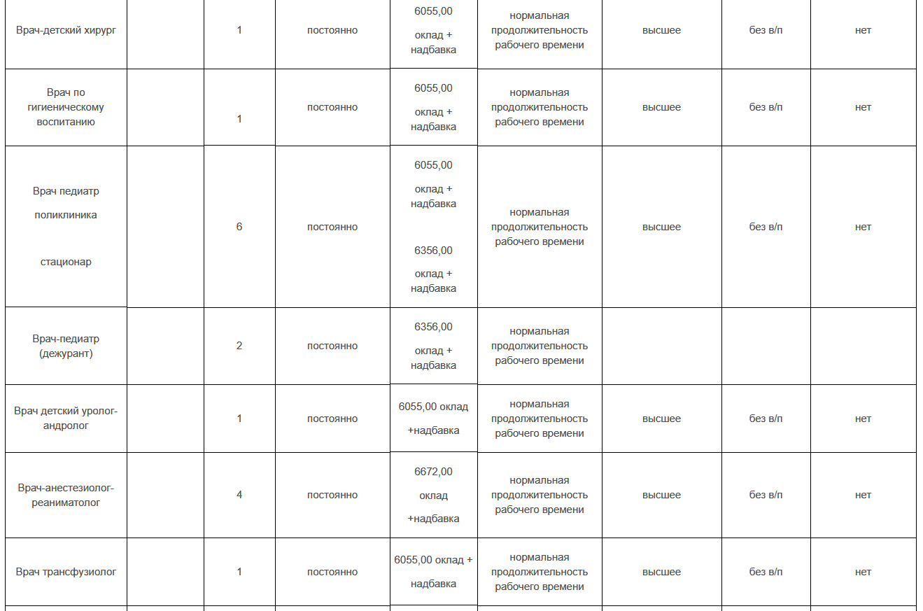 Однако реальные цифры буквально поражают воображение. Начальник отдела кадров Центральной городской больницы города Азов (Ростовская область) выставила на сайт вакансии, указав зарплаты всех врачей и медперсонала. Как оказалось, максимальный оклад - у заведующего отделением. Он составляет целых 7725 рублей без учета надбавок. Участковый врач-терапевт имеет оклад 6356 рублей без надбавок. Операционная медсестра - 5965 рублей. Ровно столько же получает и уборщица.