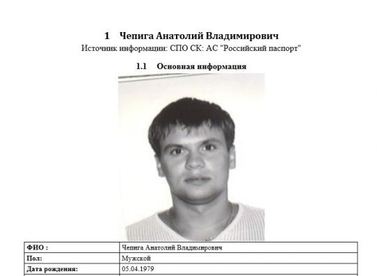 Из системы «Российский паспорт» расследователям удалось узнать, что Анатолий Чепига родился 5 апреля 1979 года, окончил ДВОКУ с отличием, затем служил в 14-й бригаде спецназа ГРУ, в подразделении, которое участвовало во второй чеченской войне.