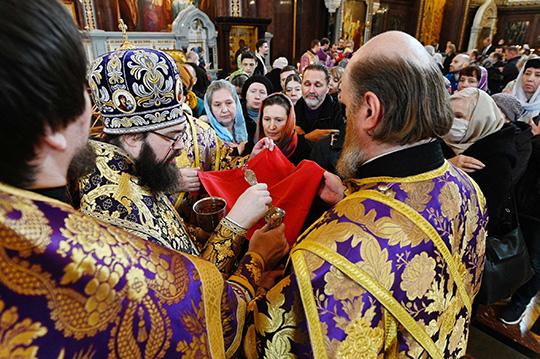 Напомним, ещё неделю назад руководство РПЦ громогласно заявляло, что отменять богослужения не собирается, поскольку причастие не только не может служить распространению вирусов, а наоборот, действует исцеляюще при любой болезни. Теперь же позиция Церкви, пусть не кардинально, но весьма существенно изменилась.