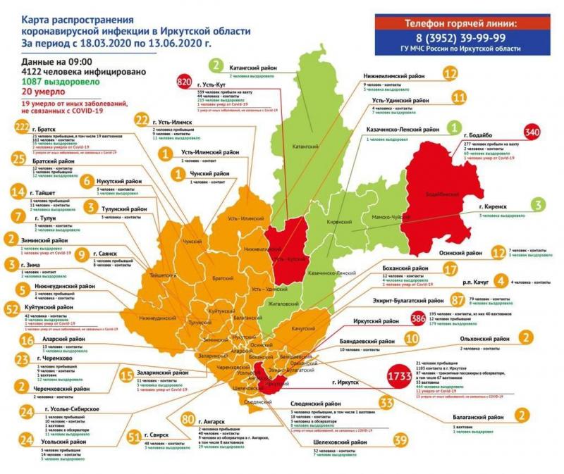 Режим самоизоляции в Иркутской области продлится до 21 июня включительно. Об этом 13 июня сообщил региональный оперштаб. Ранее планировалось, что режим снимут 14 июня. Однако в связи с эпидситуацией его решили продлить ещё на неделю.