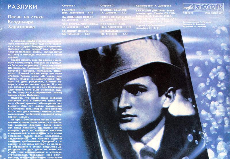 Обложка пластинки с песнями на стихи Владимира Харитонова, 1989 год