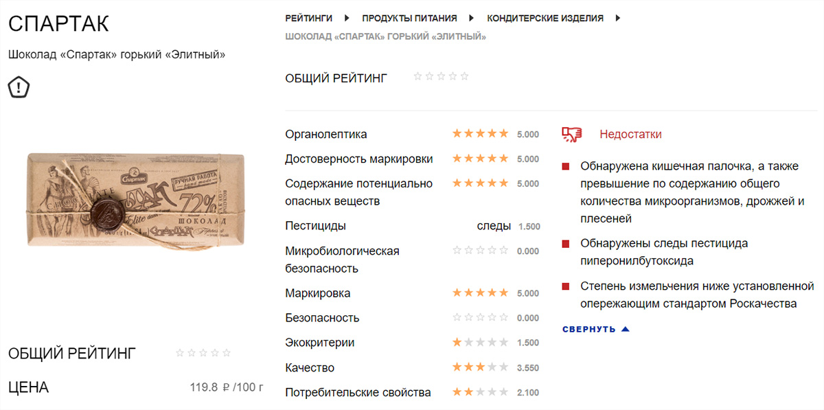 Кроме того, в «Спартаке» и «Особом» от Фабрики имени Крупской выявлены следы пестицидов (пиперонилбутоксида и пиримифос-метила соответственно). Впрочем, специалисты Роскачества гарантируют, что обнаруженное количество химикатов для борьбы с вредителями не может навредить здоровью человека.