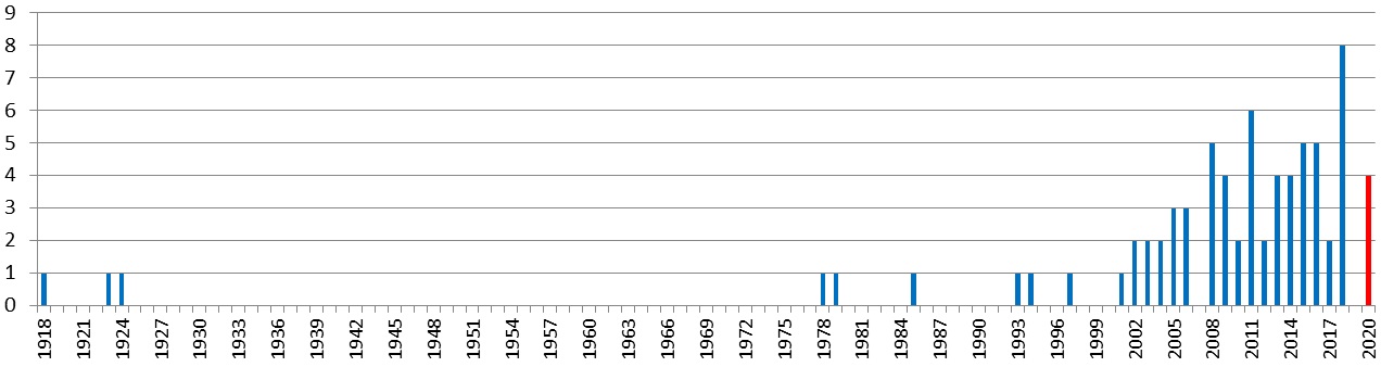 Число принятых законов и постановлений, вводивших или изменявших главные лесные законы России за период с 1918 года по настоящее время