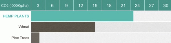 Выходит, конопля (созревает за 90 дней) поглощает почти в 10 раз больше СО2, чем гектар сосновых деревьев, а растут они явно дольше. По подсчетам исследователя промышленная конопля поглощает от восьми до 15 тонн углекислого газа на гектар в год. Лес - от двух до шести тонн, в зависимости от возраста и места произрастания.