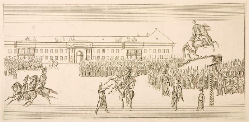 «Сенатская площадь 14 декабря 1825 года» из серии «Декабристы», 1969. Хранится в Новосибирском художественном музее