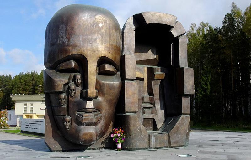 Композиция «Маска скорби: Европа – Азия». Установлена в 2017 году на 12‑м километре Московского тракта под Екатеринбургом. Высота 3 метра