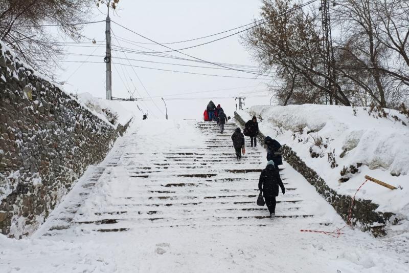 Местные жители обратили внимание, что у лестницы на Речном вокзале в Новосибирске спилили перила. Ранее сибиряки жаловались на скользкую лестницу.
