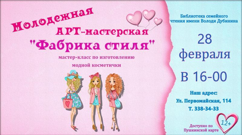 28 февраля в Библиотеке семейного чтения имени Володи Дубинина состоится молодёжная арт-мастерская «Фабрика стиля».
