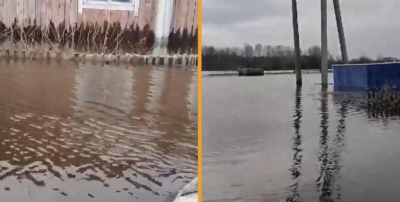 Улицы села остаются затоплены по колено, несмотря на снижение уровня воды.