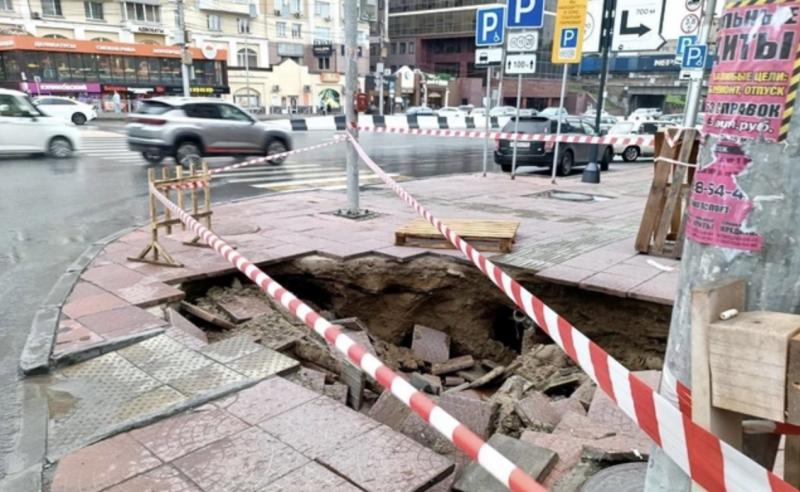 Опасное место было ограждено. В пресс-центре мэрии пока не комментируют происшествие.