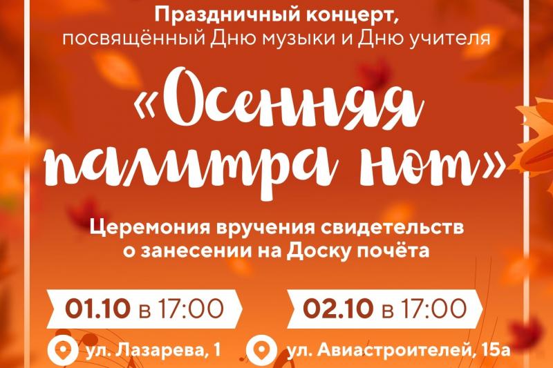 Мероприятие приурочено к Международному дню музыки, Дню пожилого человека и предстоящему Дню учителя. В концертном зале школы соберутся ветераны педагогического труда, ныне работающие в школе преподаватели, обучающиеся и их родители. В программу концерта войдут инструментальные и вокальные номера, церемония вручения свидетельств о занесении на Доску почёта школы.