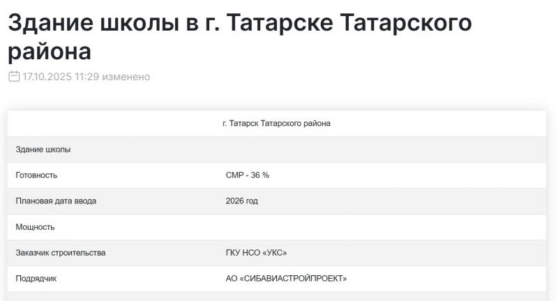 По данным регионального Минобра на октябрь 2025 года, на объекте всё ещё возводится каркас здания, а готовность школы составляет всего 36 %. При таком темпе очевидно, что и к первому сентября 2026 года школу не сдадут.
