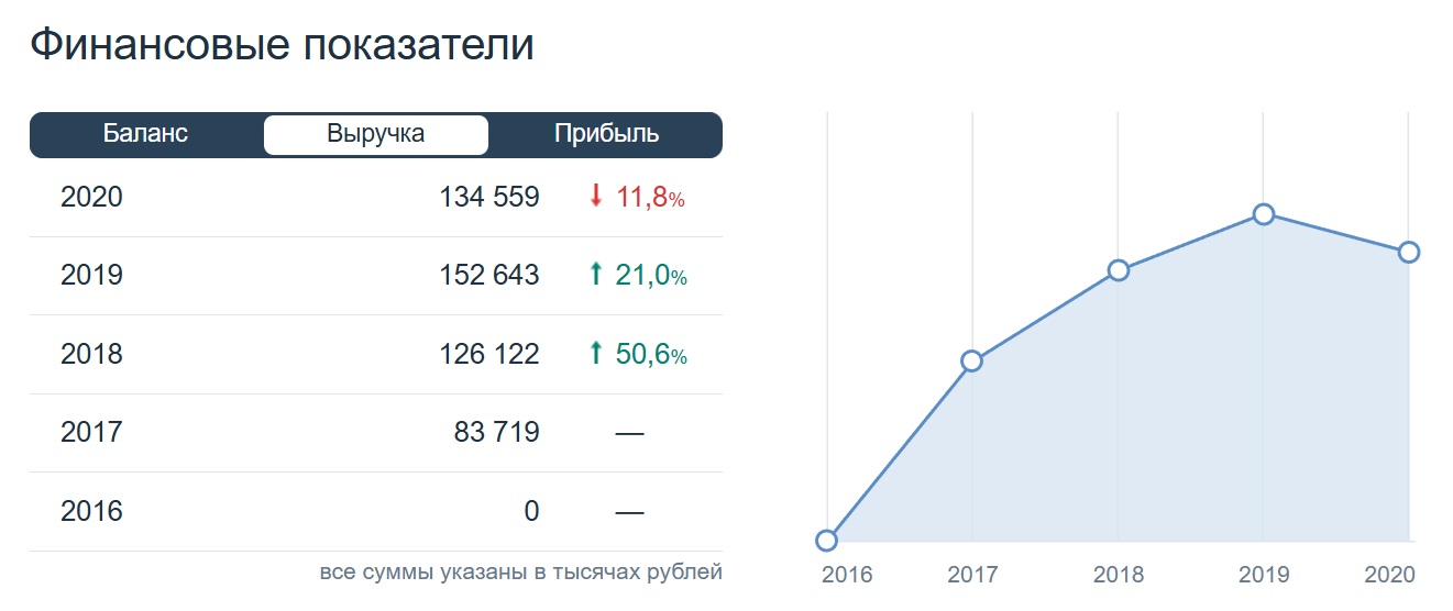 Финансовые показатели этой фирмы выглядят как идеальный пример коррупционных схем. При выручке в 152,6 миллиона рублей в 2019 году прибыль составила всего 18 тысяч рублей. Рентабельность в 0,01 % — практически нулевой показатель. Такая аномально низкая прибыль при огромном обороте заставляет усомниться в том, что фирма вообще вела реальный строительный бизнес.