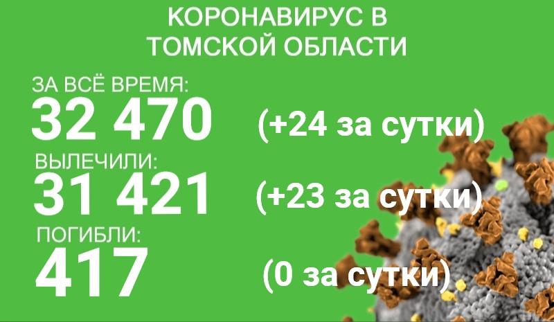 COVID-19 в Томской области: выздоровели 23 человека, заболели 24