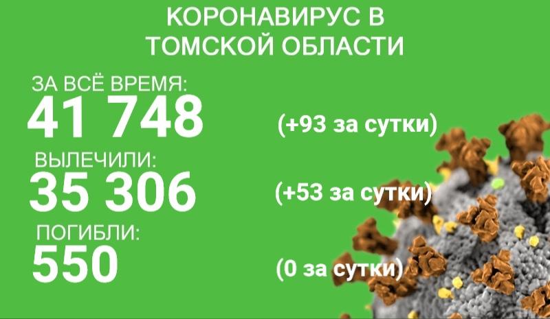 В Томской области 93 новых случая COVID-19. Выздоровели 53 человека
