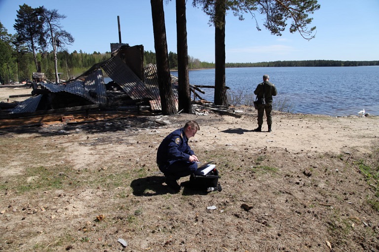 После двойного убийства мужчина облил горючей жидкостью строения на заимке и поджег их. Пожар уничтожил имущество охотхозяйства и владельца заимки на сумму свыше 19,5 миллиона рублей и росшие рядом деревья на сумму свыше 330 тысяч рублей. По месту жительства подозреваемого был обнаружен незаконно хранимый порох весом свыше 200 граммов.