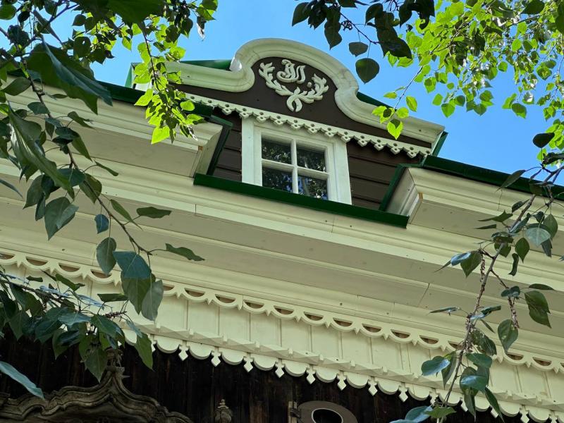 Крышу дома на Татарской, 29 отремонтировали в прошлом году: установили красивые опорные балки, резные элементы по периметру второго этажа, заменили водосточные трубы.