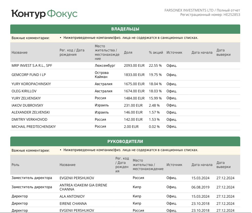 Кому же принадлежит кипрский оффшор Farsonex Investments Limited, кто основной владелец? Кто стоит за ним? Вопрос интересный, нам пришлось сделать еще одну выписку. Информация по компании с Кипра нас не сказать, что сильно удивила, но серьезно озадачила. Итак, совладельцами оказались уже знакомые нам Олег Кириллов, Юрий Коропачинский, братья Александр и Юрий Зельвенские, Михаил Предтеченский, Дмитрий Верховод, Яков Дубровский, а также еще две компании – еще одна фирма из Люксембурга по названием MRP INVEST S.A.R.L. и фонд с Каймановых островов (британская юрисдикция), GEMCORP FUND I LP. Люксембургская фирма MRP INVEST S.A.R.L., как показала выписка с регистра Люксембурга принадлежит все тому же Михаилу Предтеченскому, а вот с фондом с Каймановых островов все куда интереснее.
