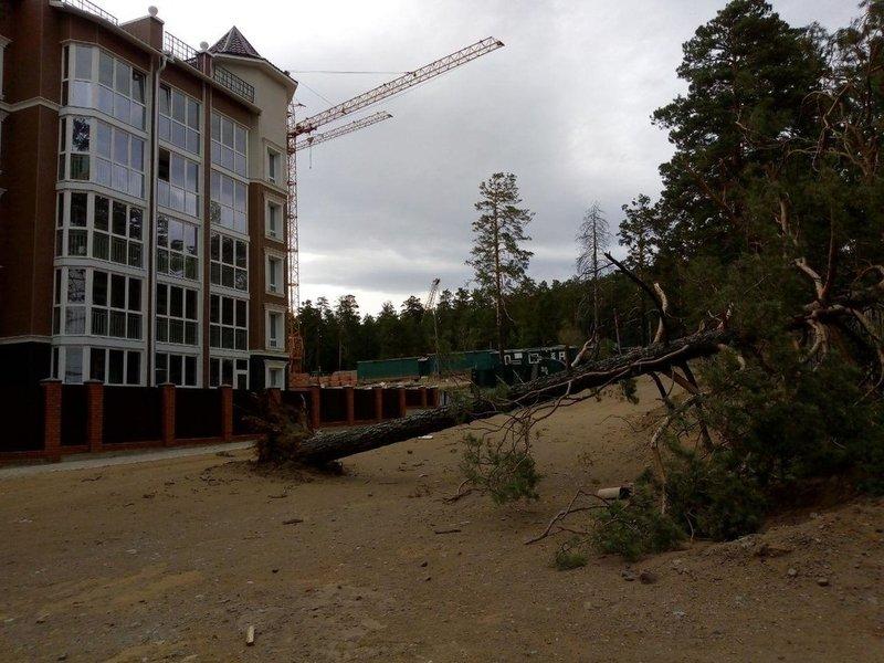 Перед порывами ветра не устояли и большие деревья. Некоторые сломались пополам, другие шторм вырвал с корнем.